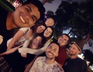 Der Abend nach der Free Walking Tour brachte weitere Pisco Sour in einer Bar am Meer mit sich („Arriba, a bajo, al centro y adentro“) und anschließend tobten wir und unsere neuen Bekannten von der Free Walking Tour (Lukas, Gustavo, Jose und Mariano) wie Kinder in einem Wasserpark, rannten durch Fontänen und wurden, tropfend nass, zum Abschluss noch von unserem Tourguide in seine WG eingeladen.