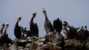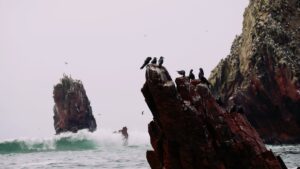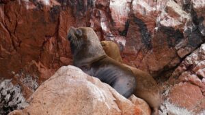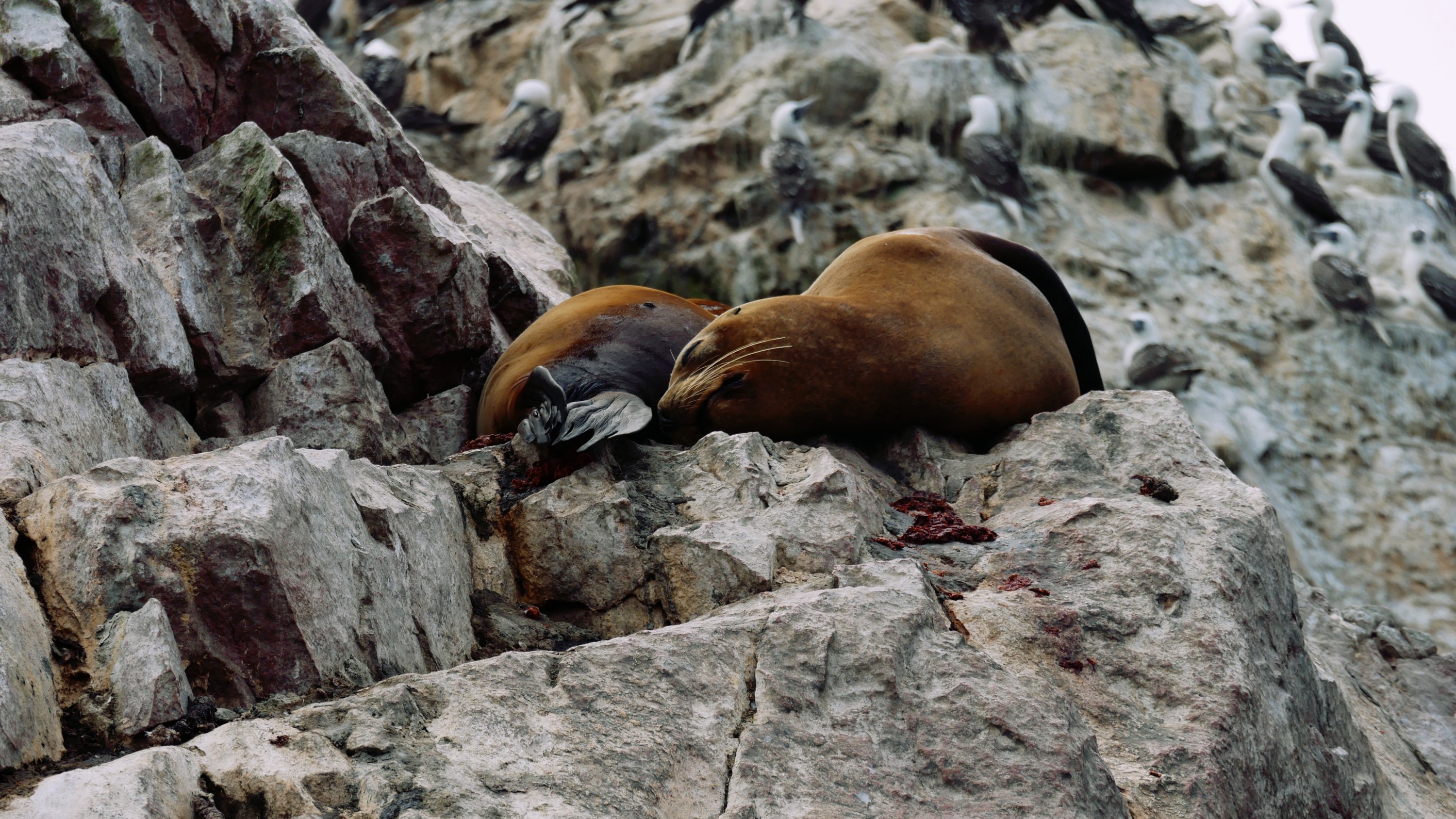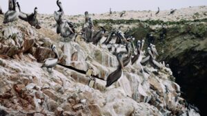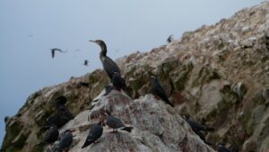 Wir spazierten am Strand entlang und genossen einen ganz entspannten Abend. Mit dem Boot fuhren wir am nächsten Morgen zu den Islas Ballestas. Dort zeigten sich Möwen, Kormorane, Inkaseeschwalben, Tölpel, Humbold Pinguine und Robben, welche von dem fischreichen Wasser des Humboldtstroms angelockt werden. Wir umkurvten mit dem Boot die steilen, ins Meer ragenden Felsen und staunten über die beeindruckende Menge an Vogelkot. Vor Zeiten des Chemiedüngers wurde der Vogelkot alle 5 Jahre von Hand abgekratzt und für viel Geld als Dünger verkauft.