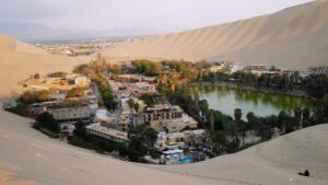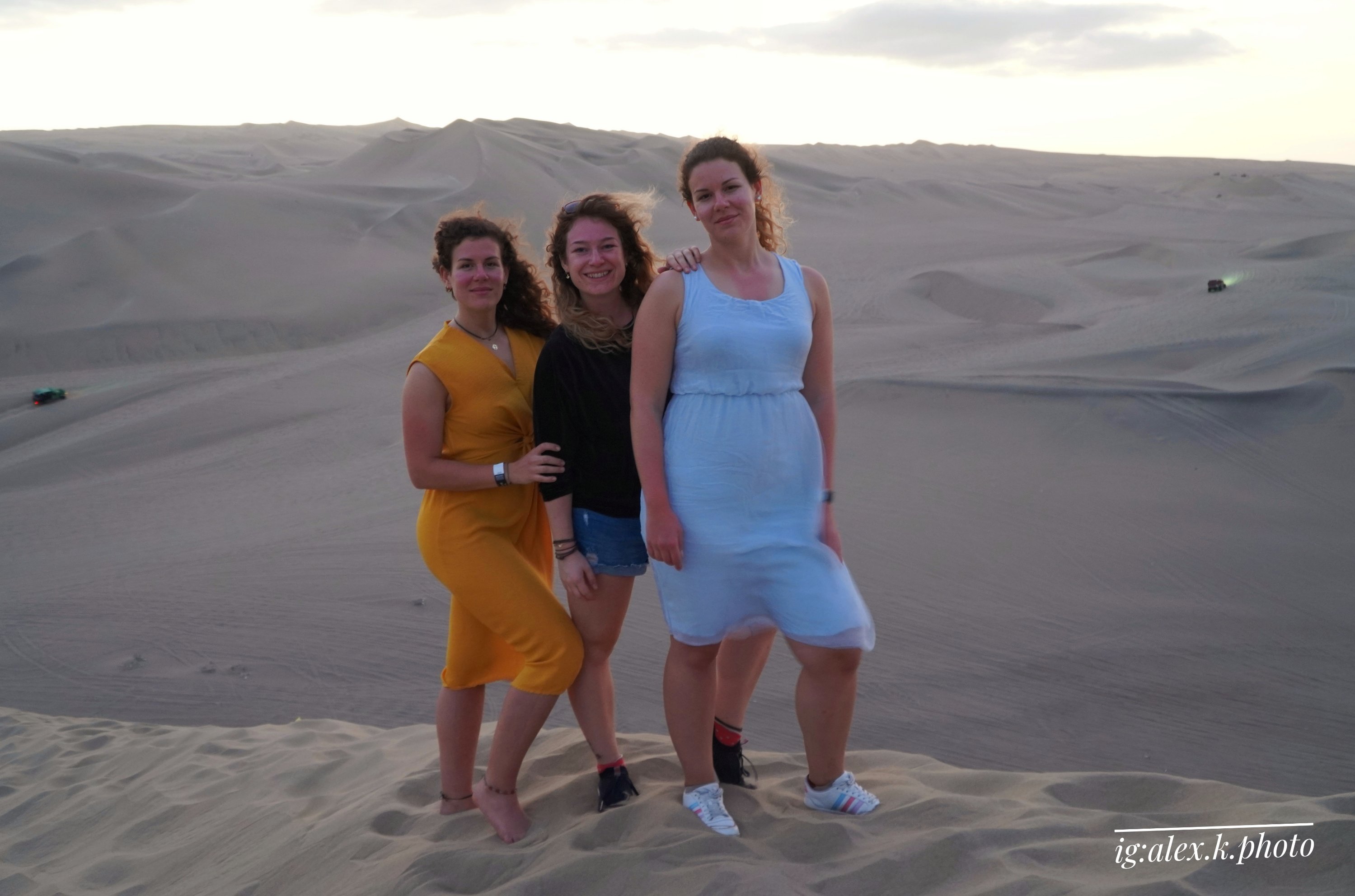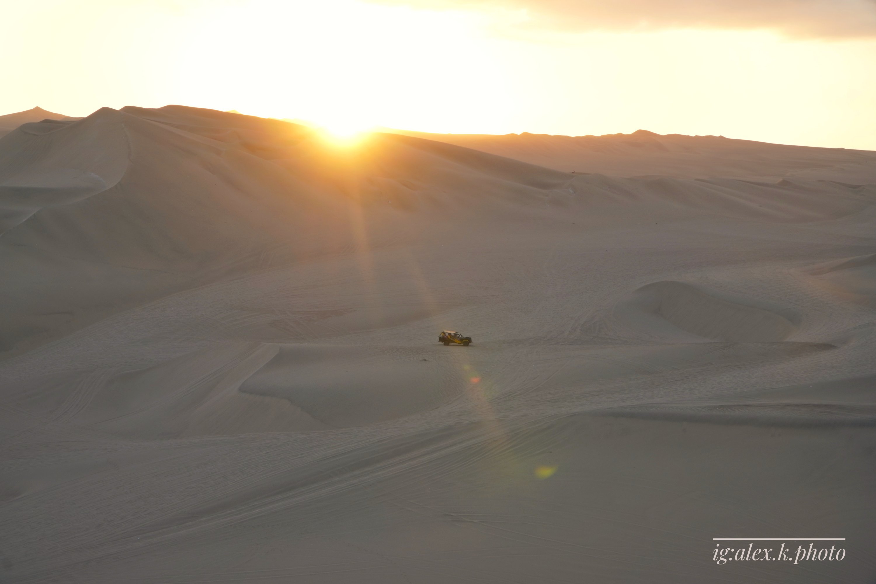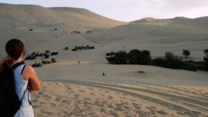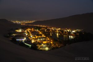 Nebenbei brutzelten wir in der Sonne. Kaum zu glauben, dass schon bald Sylvester ist! Nach einer wilden Taxifahrt nach Ica wanderten wir in Huacachina die Dünen empor um uns den Sonnenuntergang anzusehen. Während sich die Sonne zunehmend senkte und hinter den Dünen verschwand dröhnten Strandbuggys die Sandhügel hinauf und die Insassen kreischten bei jeder Kurve laut auf. Auf der einen Seite konnten wir auf eine herrlich beleuchtete Dünenlandschaft blicken, während sich auf der anderen Seite die Oase erstreckte und mit zunehmender Dunkelheit an ein Märchen aus 1001 Nacht erinnerte. Wirklich schön!