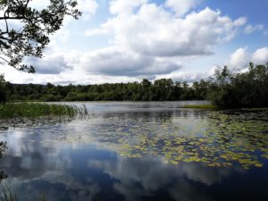Nachdem sich der nächste Tag als sogenannter „T-Shirt Tag“ entpuppte, konnten wir nach einem leckeren Blaubeer-Müsli-Frühstück unser Gepäck (Drohne, Kamera, 3 verbliebene Kekse und Wasser) schultern und umrundeten den See Loch Kinord. Eine herrliche, entspannte Wanderung. Oder auch: ein toller Abschluss unserer Reise. Als wir so am See saßen und die Spiegelung der Wolken im Wasser auf uns wirken ließen, trieb langsam eine Ente vorbei.