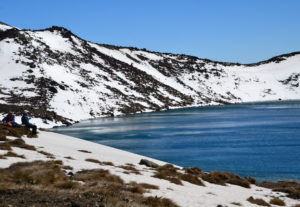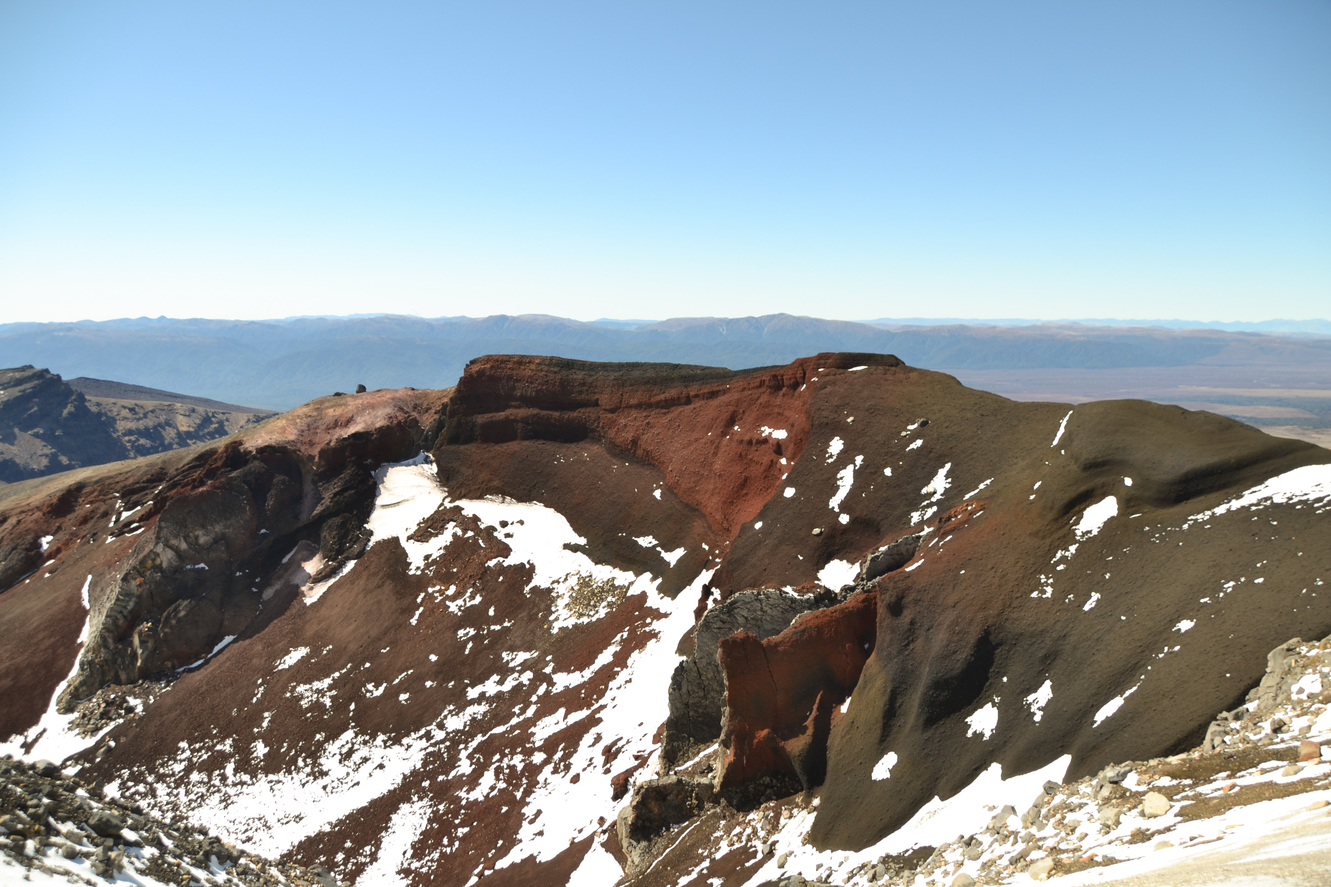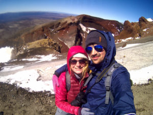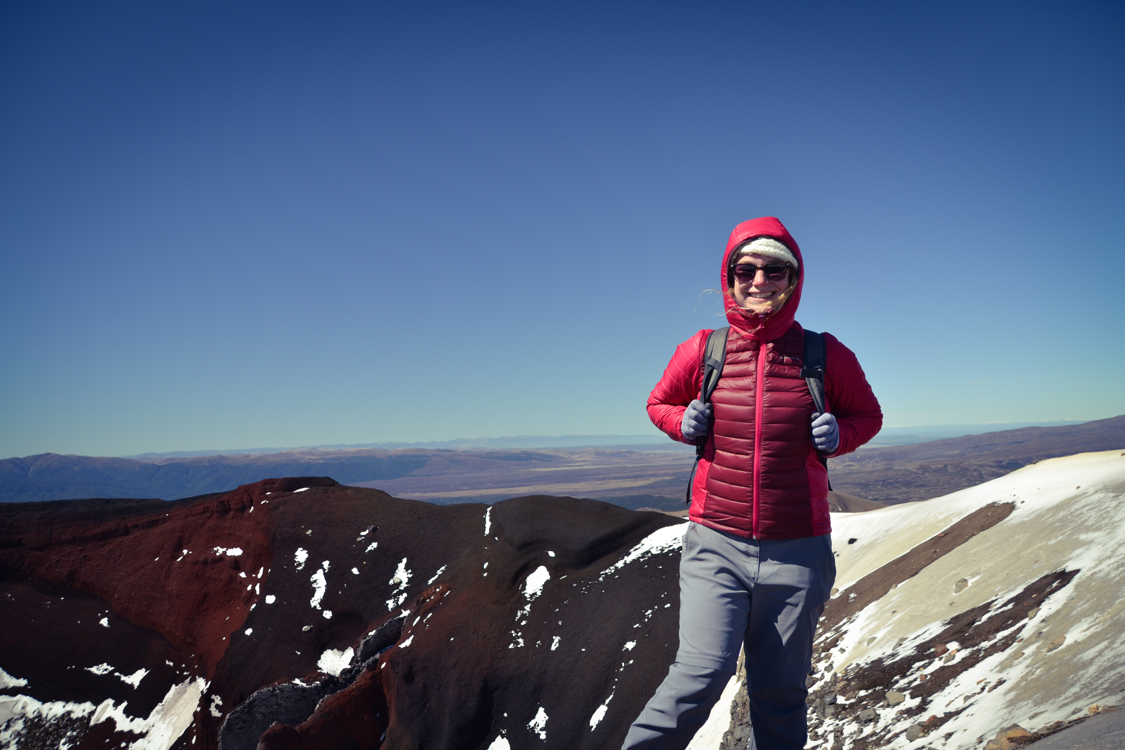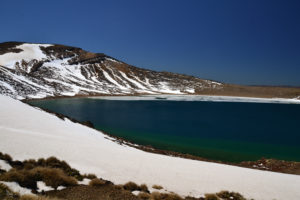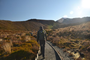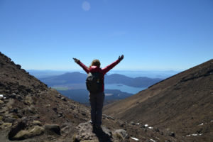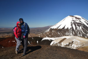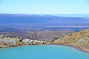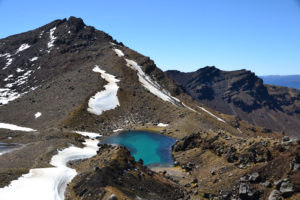Wir hatten unseren alten Toyota Hiace direkt mit Blick auf den See geparkt und genossen die friedliche Atmosphäre des Campingplatzes. Der Tag darauf war hingegen höchst aktiv. Wir wanderten die beliebte und gut besuchte Tongariro Alpine Crossing tour über und durch die Krater der noch aktiven Vulkane Tongariro und Ngauruhoe. Der Bus holte uns um 10 vor 7 am Morgen ab und brachte uns zum Startpunkt der etwa 7 stündigen und 20km langen Tour. Wir marschierten im strahlenden Sonnenschein bei teilweise -4° durch die bekannte Landschaft aus Herr der Ringe, kraxelten dabei 800 Höhenmeter empor und wurden mit unglaublichen Ausblicken auf majestätische Berge und türkisene oder tiefblaue Kraterseen belohnt. Mitunter kamen wir ziemlich ins schnaufen, aber jeder gegangene Meter wurde durch die herrliche Rundumsicht am red crater belohnt. Der Abstieg zog sich ewig und auch wenn er wirklich spektakulär war, wir waren froh, als wir nach 7,5h unser Ziel, die Abholstation, erreicht hatten.