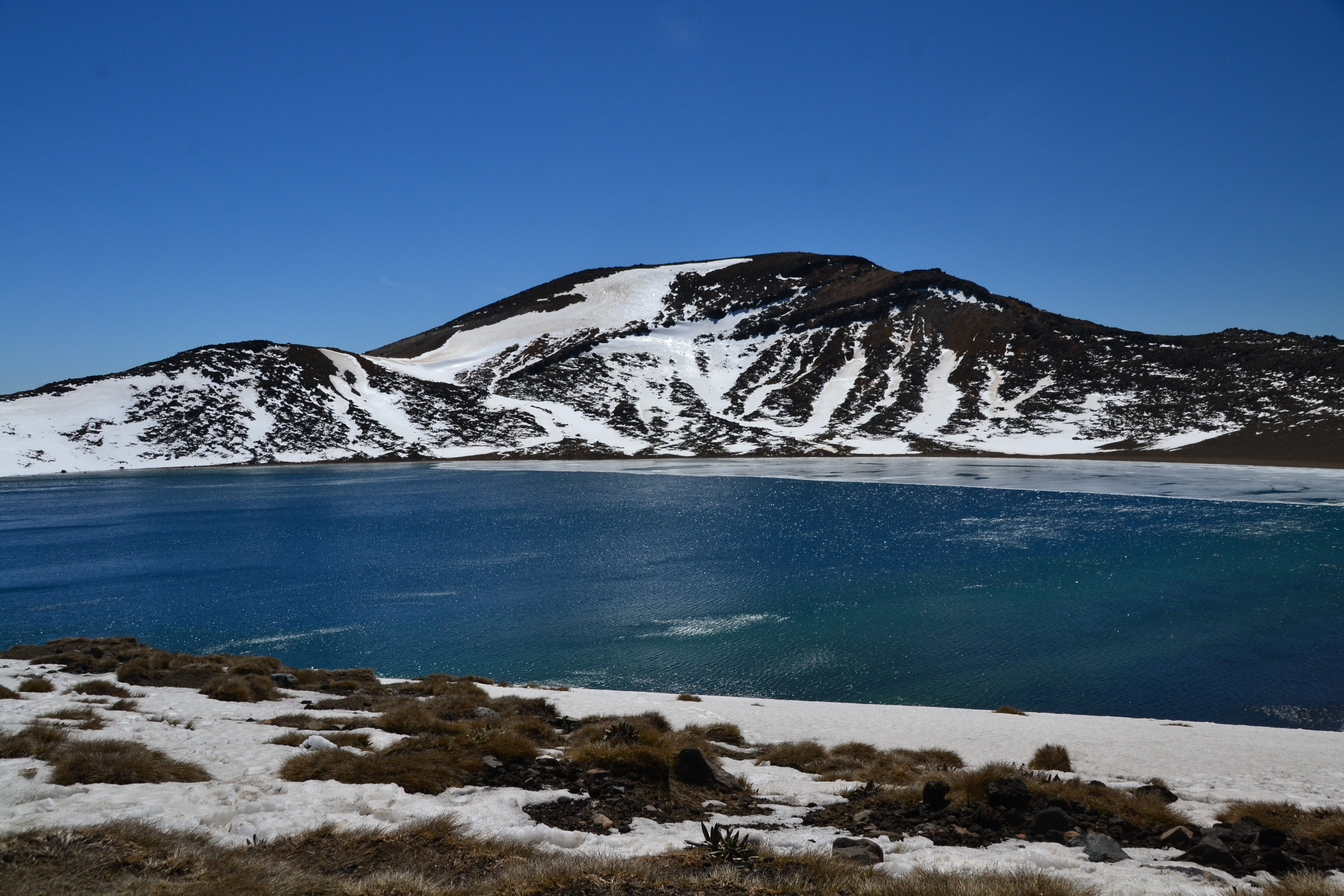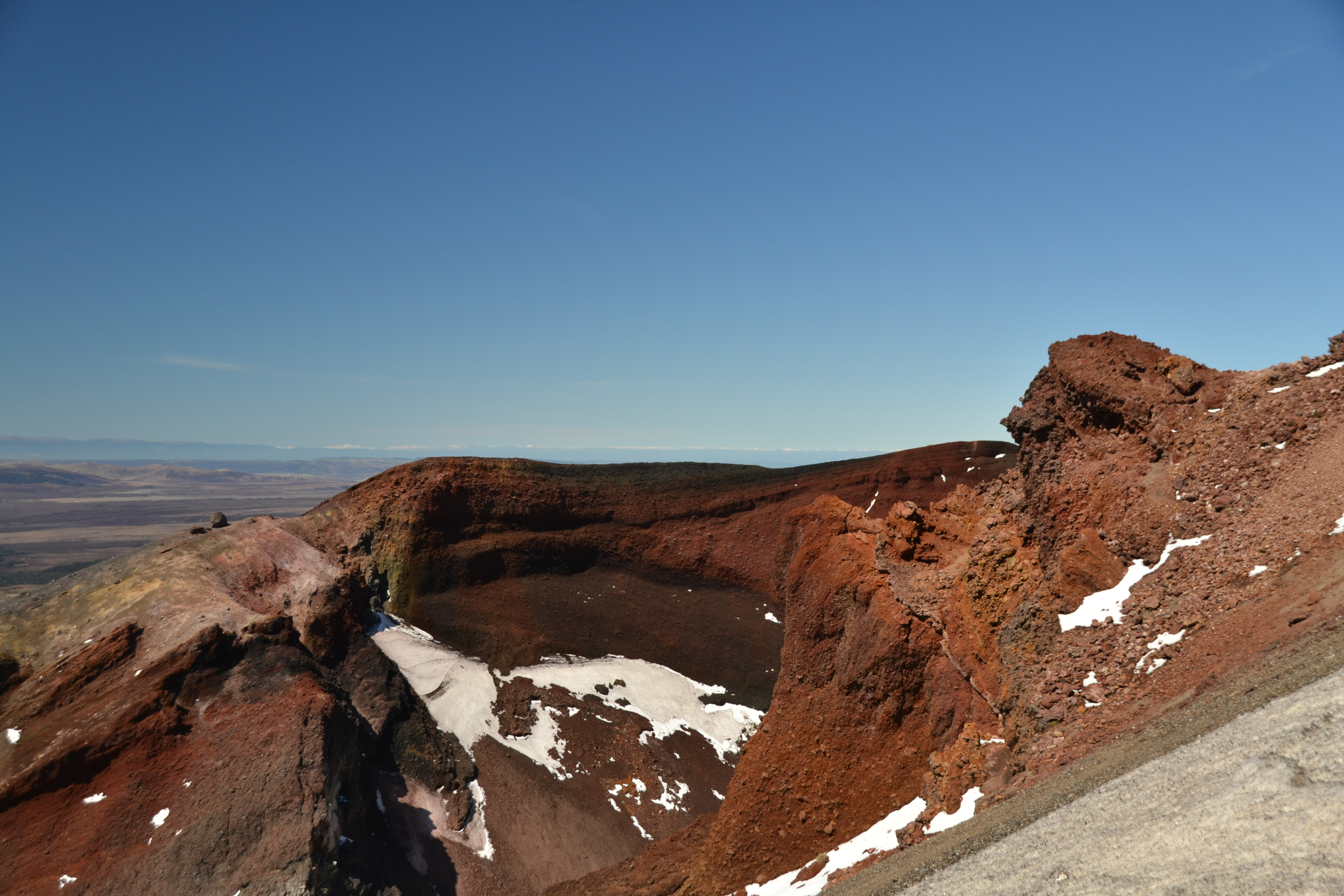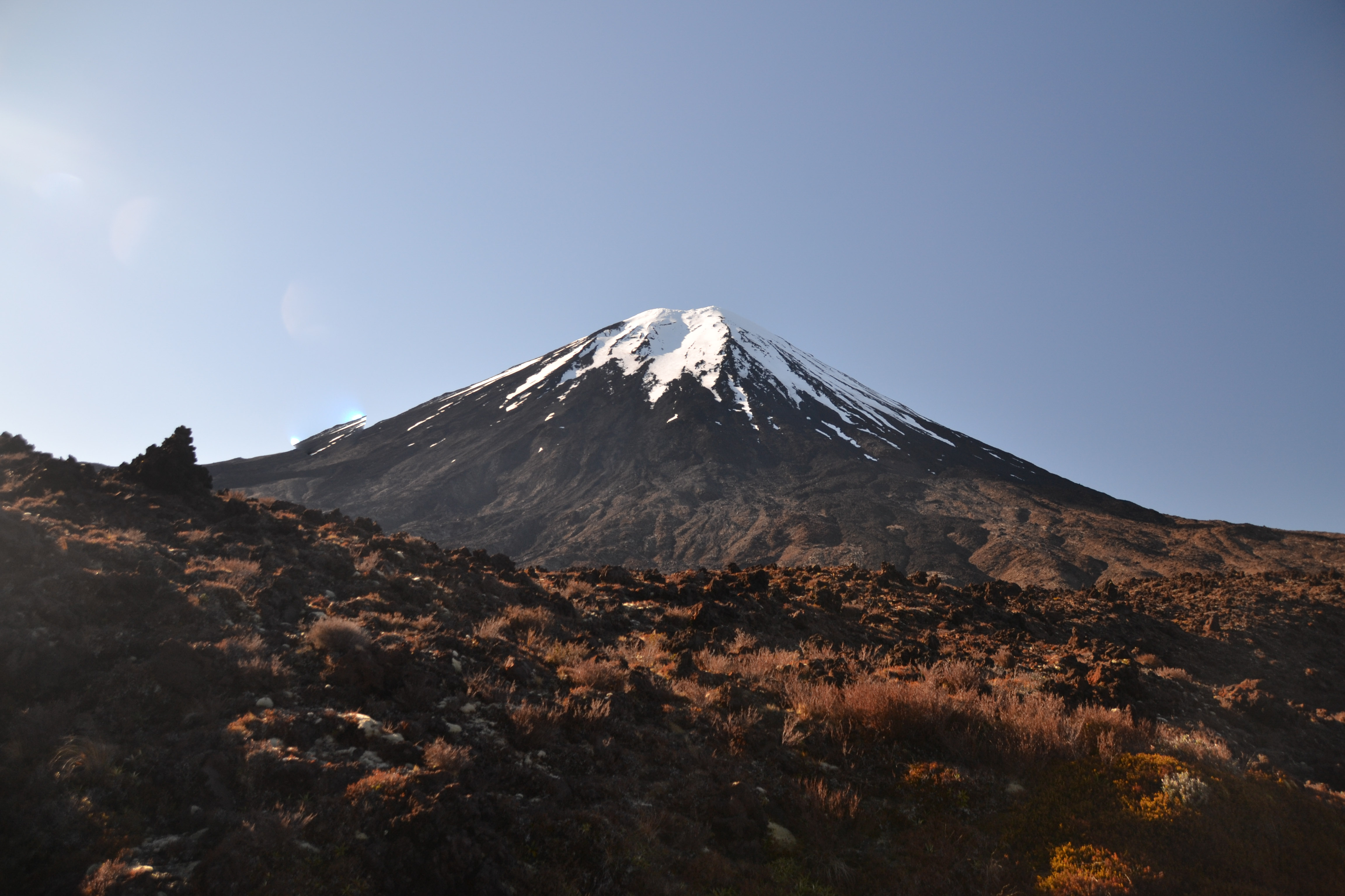 Wir hatten unseren alten Toyota Hiace direkt mit Blick auf den See geparkt und genossen die friedliche Atmosphäre des Campingplatzes. Der Tag darauf war hingegen höchst aktiv. Wir wanderten die beliebte und gut besuchte Tongariro Alpine Crossing tour über und durch die Krater der noch aktiven Vulkane Tongariro und Ngauruhoe. Der Bus holte uns um 10 vor 7 am Morgen ab und brachte uns zum Startpunkt der etwa 7 stündigen und 20km langen Tour. Wir marschierten im strahlenden Sonnenschein bei teilweise -4° durch die bekannte Landschaft aus Herr der Ringe, kraxelten dabei 800 Höhenmeter empor und wurden mit unglaublichen Ausblicken auf majestätische Berge und türkisene oder tiefblaue Kraterseen belohnt. Mitunter kamen wir ziemlich ins schnaufen, aber jeder gegangene Meter wurde durch die herrliche Rundumsicht am red crater belohnt. Der Abstieg zog sich ewig und auch wenn er wirklich spektakulär war, wir waren froh, als wir nach 7,5h unser Ziel, die Abholstation, erreicht hatten.