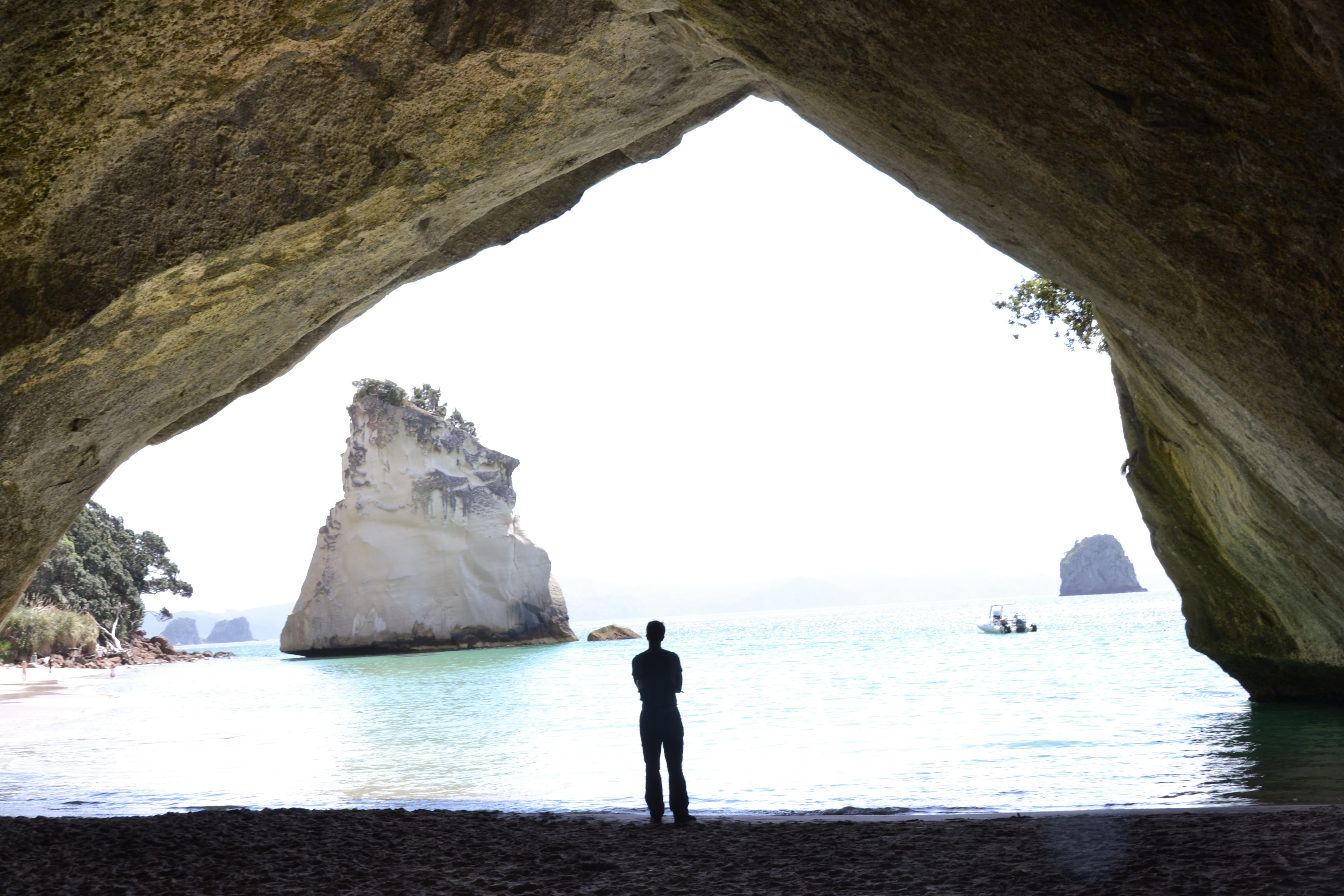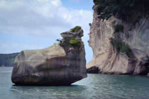 Und auch bei Hahei, im Osten der Halbinsel, findet sich ein wunderschönes Fleckchen: die cathedral cove (ein bogenförmiger Höhlendurchgang, der von einer einsamen Bucht zur nächsten führt).