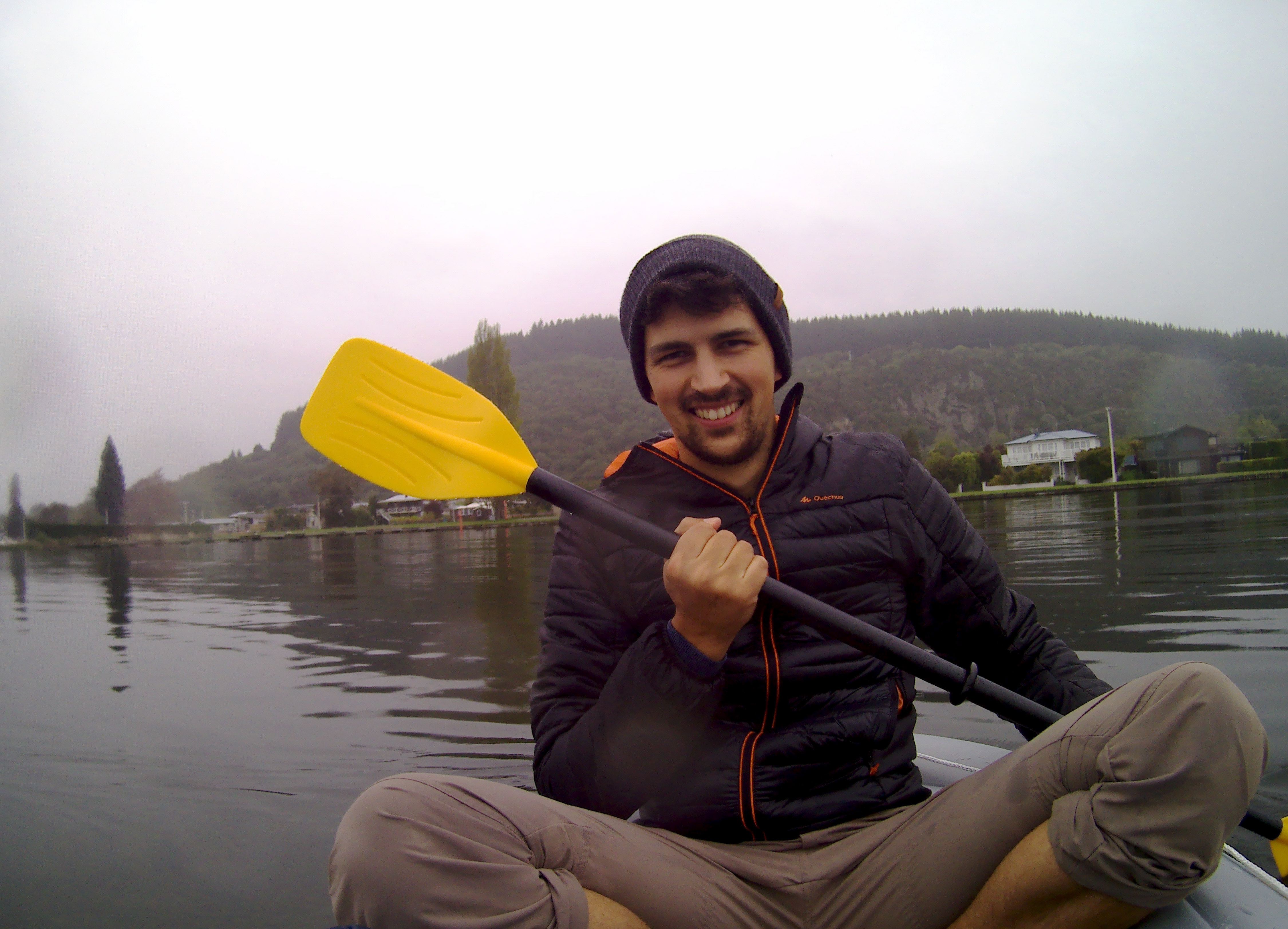Im Kmart haben wir uns für 25$ ein kleines Schlauchboot gekauft um damit die Seen in Neuseeland unsicher zu machen. Und am Lake Taupo weihten wir es direkt ein (es war bitterkalt und hat geregnet, aber wir hatten unseren Spaß und ein paar Fans (die uns wohl eher ausgelacht als zugejubelt haben..))