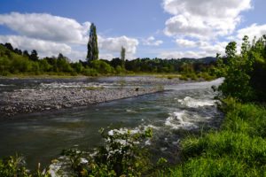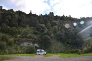 Der Lake Taupo verabschiedete uns mit strahlendem Sonnenschein, welcher uns auch auf dem Weg nach Tamarunui begleitete. Dort machten wir am Whanganui River einen schönen Frühlingsspaziergang und trafen dabei einen sehr freundlichen, alten Kiwi (Bewohner Neuseelands) mit seiner Hündin „Miss“. Er erzählte uns etwas über die Gegend und das er noch nie das Land verlassen hatte und schenkte uns zum Abschied zwei Glückssteine aus dem Fluss.