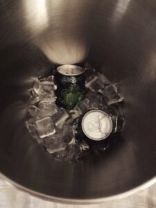 Zwei Cocktails und eine tolle Stunde später tauchten wir aus der Kellerbar zwischen tropischem Bast, Kerzenschein und den coolsten Cocktailgefäßen Chicagos wieder auf und flanierten durch die nächtlichen Straßen der Stadt. Zurück im Hotel schwammen wir noch einige Runden im hoteleigenen Pool und genossen auf der Dachterrasse den Blick auf die beleuchteten Skyscraper und die befahrenen Straßen. Einfach nur Waaahnsinn..! Und da wir noch zwei Bier übrig hatten, kühlten wir diese im schicken Metall-Mülleimer, den wir auf unserem Zimmer fanden. Eis bekamen wir direkt aus der Eismaschine. Champagnerkühler für Schwaben. Wir Füchse! 🙂