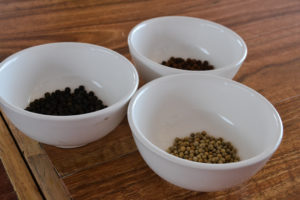 Praktischerweise vermietete unser Hostel direkt Roller, weshalb wir direkt nach dem besten Omelette aller Zeiten (regionaler Pfeffer sag ich da nur..) losfuhren um zu schauen, wo und wie die beste Zutat dieses Omelettes hergestellt wurde. Doch die Karte, die wir uns am Hostel noch organisiert hatten war mehr als unverständlich, weshalb wir uns andauernd verfuhren oder nicht wussen, ob wir noch auf dem richtigen Weg waren. Und wir mussten auch gleich zu Beginn erfahren, dass keiner der Einheimischen Englisch spricht und uns den Weg zeigen konnte. Sie zeigten einfach mit einem überzeugenden Gesichtsausdruck in die nächstbeste Himmelsrichtung. Doch irgendwann waren wir doch auf dem richtigen Weg zu unserem Ziel, einer Pfefferplantage. Und der Weg war so holperig und rutschig, dass wir uns, sowie unseren Roller voller Schlamm ans Ziel brachten. Wie wir das Ziel fanden war auch nett: uns überholte auf dem Roller eine (faszinierend unschlammige) Kambodschanerin. Als wir die nach dem Weg fragten konnte sie uns sogar weiterhelfen und wir folgten ihr einfach. Und so kam es, dass eine perfekt gestylte, saubere und zwei sonnenverbrannte, verstrubbelte und schlammbeschmierte Gestalten die Pfefferfarm erreichten auf der sie arbeitete. Diese Farm war zwar nicht unser eigentliches Ziel gewesen doch es war dort so nett, dass wir blieben. Wir erfuhren zudem, dass wir die ersten Touristen waren, die diese noch recht neue Farm (von 2015) besuchten. Und so bekamen wir eine persönliche Führung über die Farm von einem jungen, ständig kichernden Kambodschaner. Er hatte gerade erst damit begonnen Englisch zu lernen und wirkte teilweise etwas überfordert aber wir fanden ihn superknuffig und wir konnten trotzdem eine Menge von ihm lernen. Auf der Farm wurde nicht nur Pfeffer angebaut, sondern auch Avocados, Bananenpflanzen, Kokospalmen und Chilli. Die anschließende Pfefferverköstigung war auch ne tolle Sache und wir kamen natürlich nicht umhin organisch angebauten Pfeffer von dieser Farm zu kaufen.